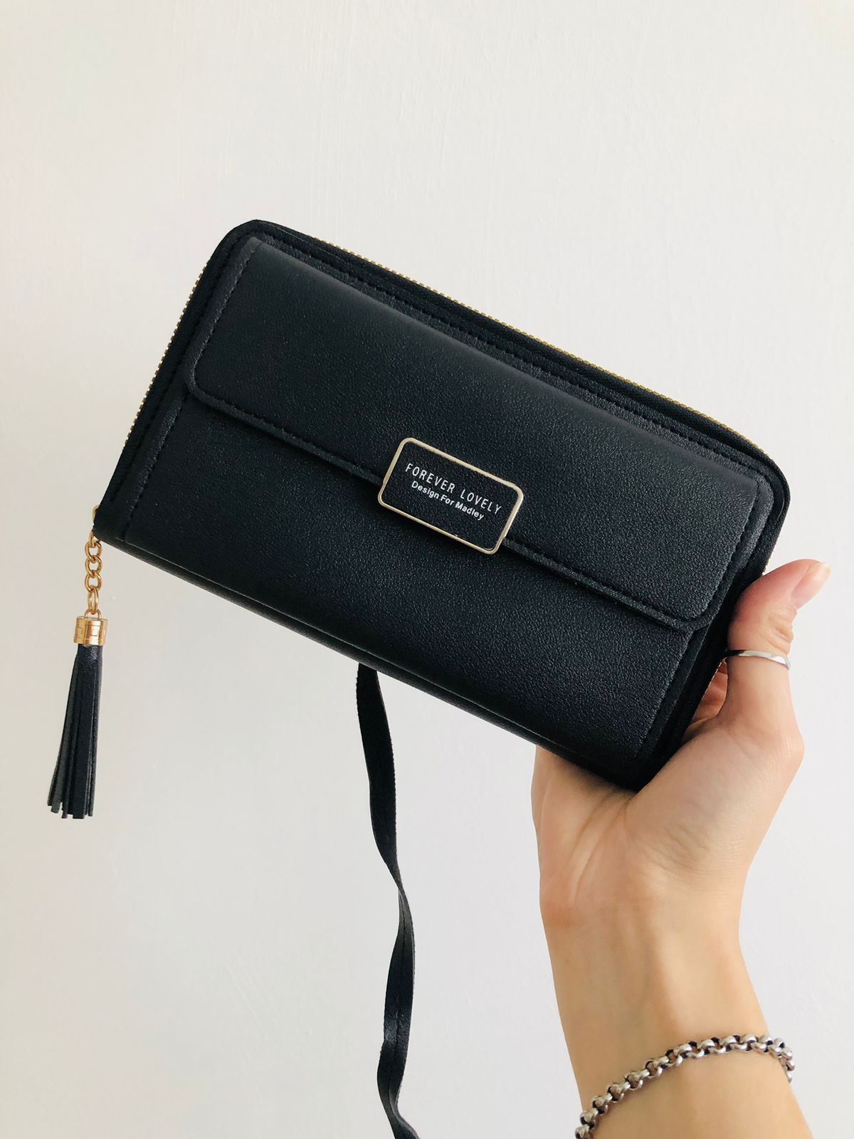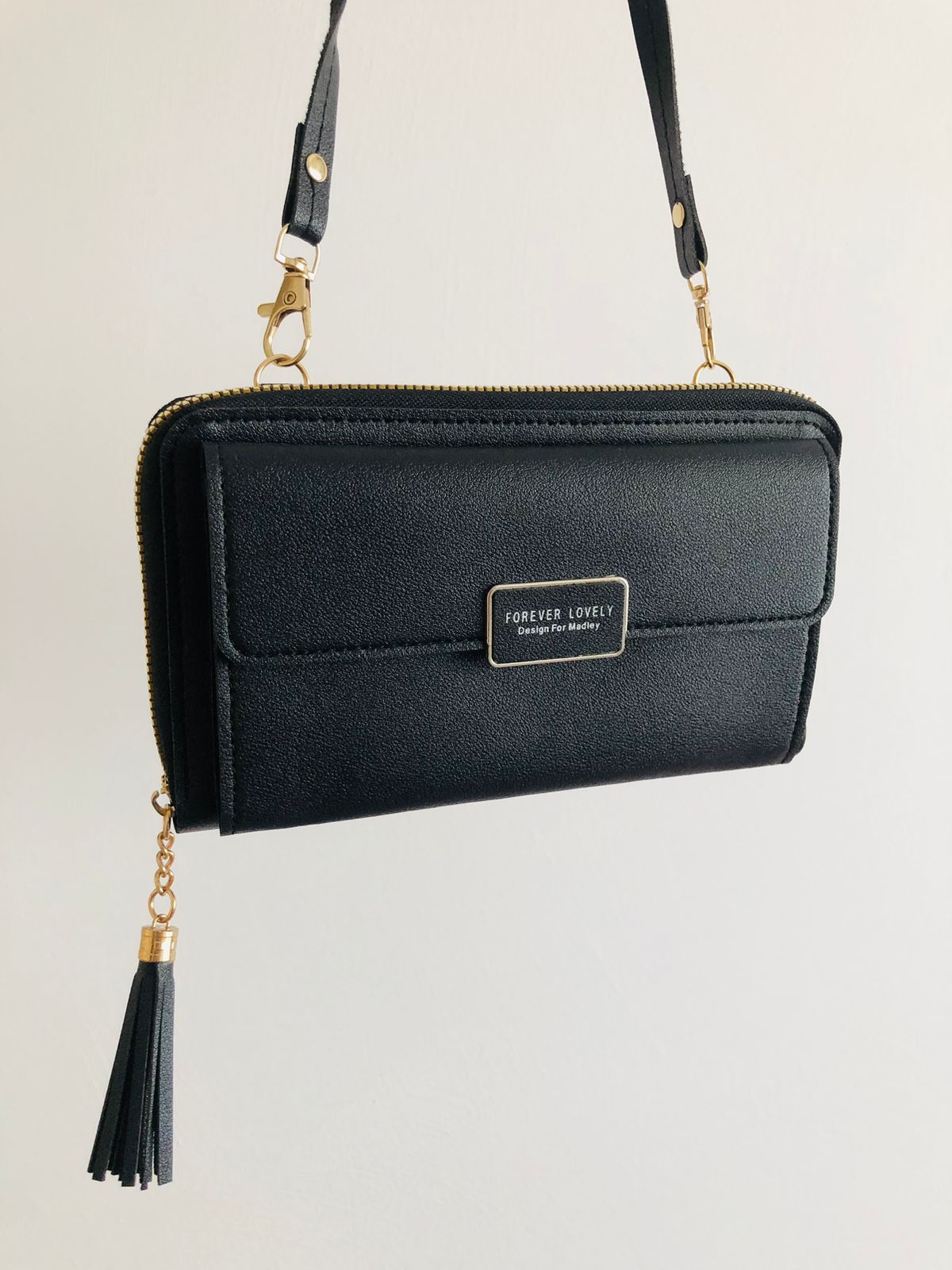 Posee correa desmontable, también se puede usar como sobre/billetera.
